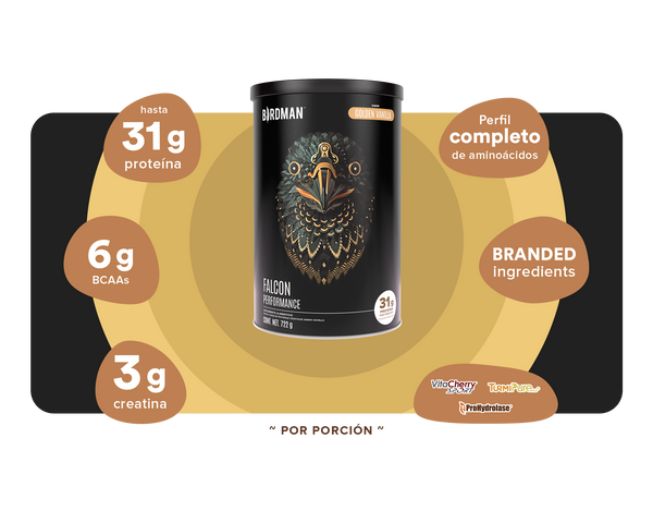 Falcon Performance es una proteína 100% vegetal con creatina, BCAAs, enzimas proteolíticas, extracto de cúrcuma y extracto de cereza, que te apoyará a alcanzar tus metas.