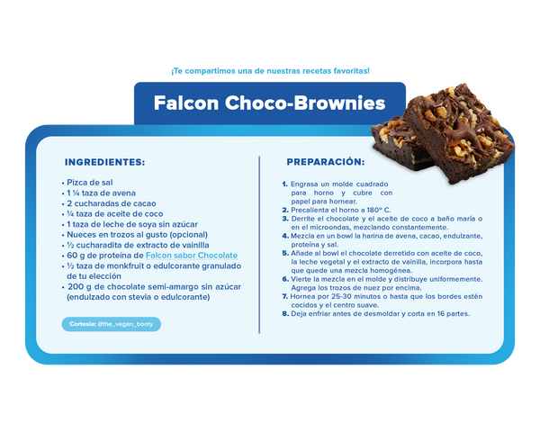 Falcon Protein está diseñada para apoyar tu ingesta de nutrientes diarios y está disponible en sabores orgánicos de chocolate, vainilla, chai, natural y fresa.