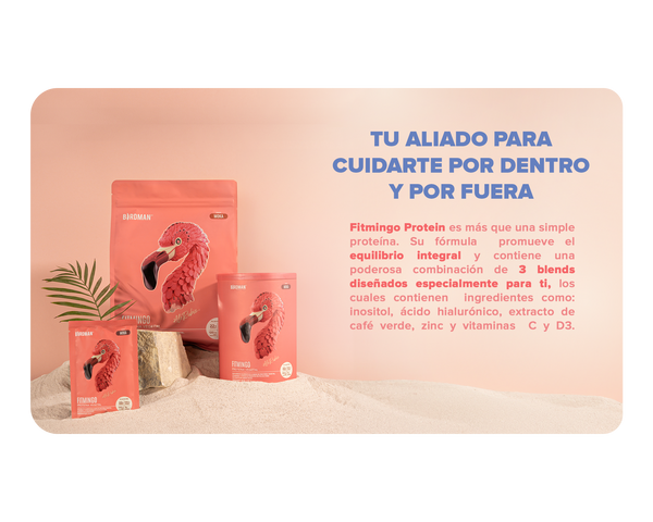 Fitmingo está diseñada para apoyar tu ingesta de nutrientes diarios. Es libre de lácteos, gluten y soya, con enzimas que apoyan una mejor absorción de la proteína.