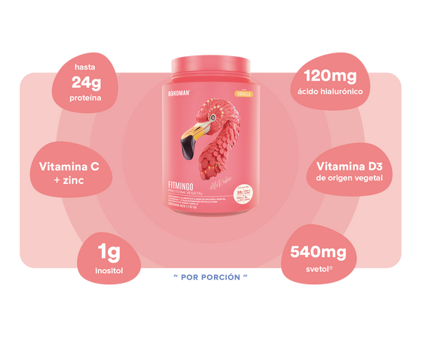 Fitmingo es una proteína 100% vegetal con ácido hialurónico, Svetol®, Inositol, PureWay C® (Vitamina C), Vitamina D3 (de origen vegetal) y Zincnova® (Zinc), ideal para complementar tu estilo de vida.