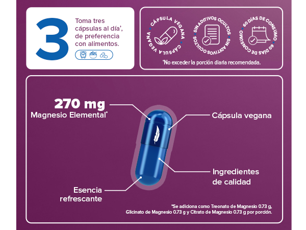 Mag Trifecta 3 en 1: Citrato, Glicinato y Treonato de Magnesio - 180 Cápsulas - 60 Porciones