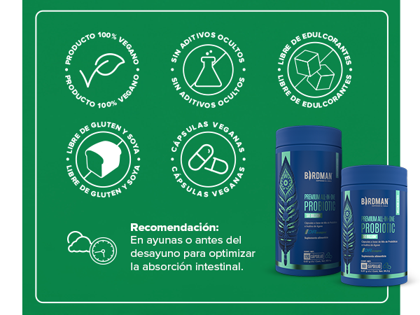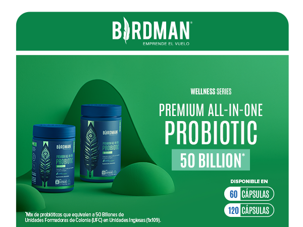 Descubre Birdman Premium All-In-One Probiotic, un probiótico superior diseñado para complementar tu alimentación diaria con 50 billones de UFC en una fórmula avanzada de liberación retardada. Esta tecnología asegura que los probióticos lleguen al intestino delgado de manera efectiva, maximizando su concentración y beneficios.